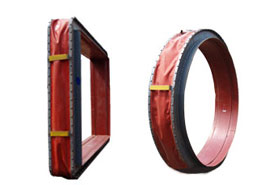 機架是非金屬膨脹節(jié)的輪廓支架,保證有足夠的強度和剛度,機架的材料應與介質(zhì)溫度相適應。一般在400℃以下用Q235-A 600℃以上用不銹鋼或耐熱鋼制成。機架一般有與所連接的煙風道相匹配的法蘭面。