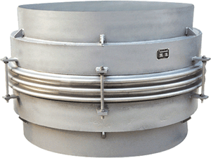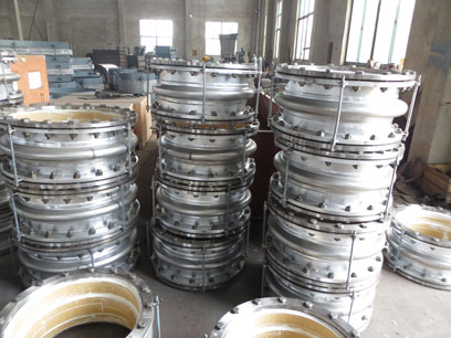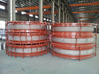 直管壓力平衡型補償器的二端各有一個工作波紋管,中間有一個平衡波紋管,膨脹節通過受力構件(大拉桿或舌管)來承受內壓推力,因此管系只需中間固定支架。該膨脹節只能吸收軸